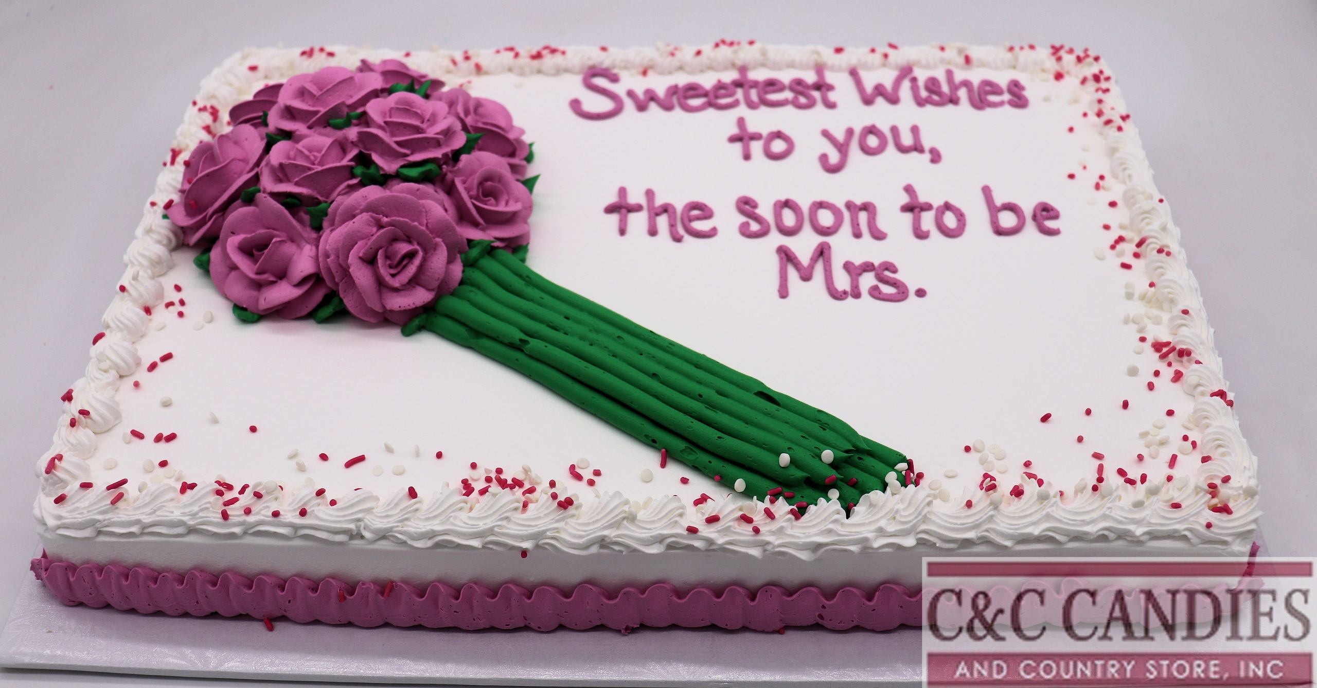 Send your sweetest wishes to the bride-to-be with our Blushing Bride Bouquet Cake! This elegant sheet cake features a beautifully piped buttercream bouquet of pink roses, complete with green stems and leaves, and a heartfelt message to celebrate the soon-to-be Mrs. It’s a perfect centerpiece for bridal showers, engagement parties, or wedding celebrations. Customize with your choice of colors and message. Available in a variety of cake flavors including chocolate, yellow, white, banana, red velvet, carrot, or confetti. Made fresh to order and frosted with our smooth, signature buttercream.