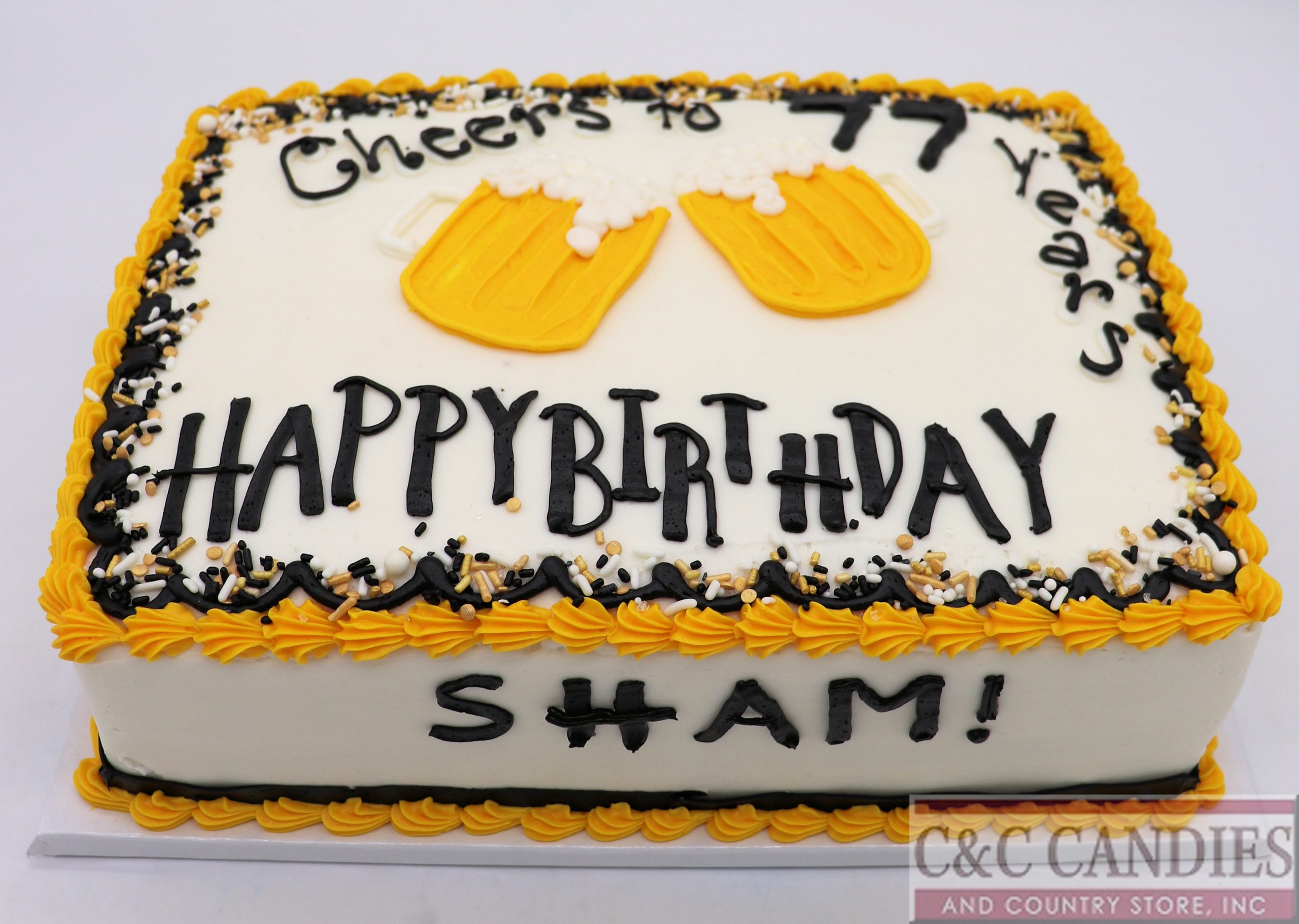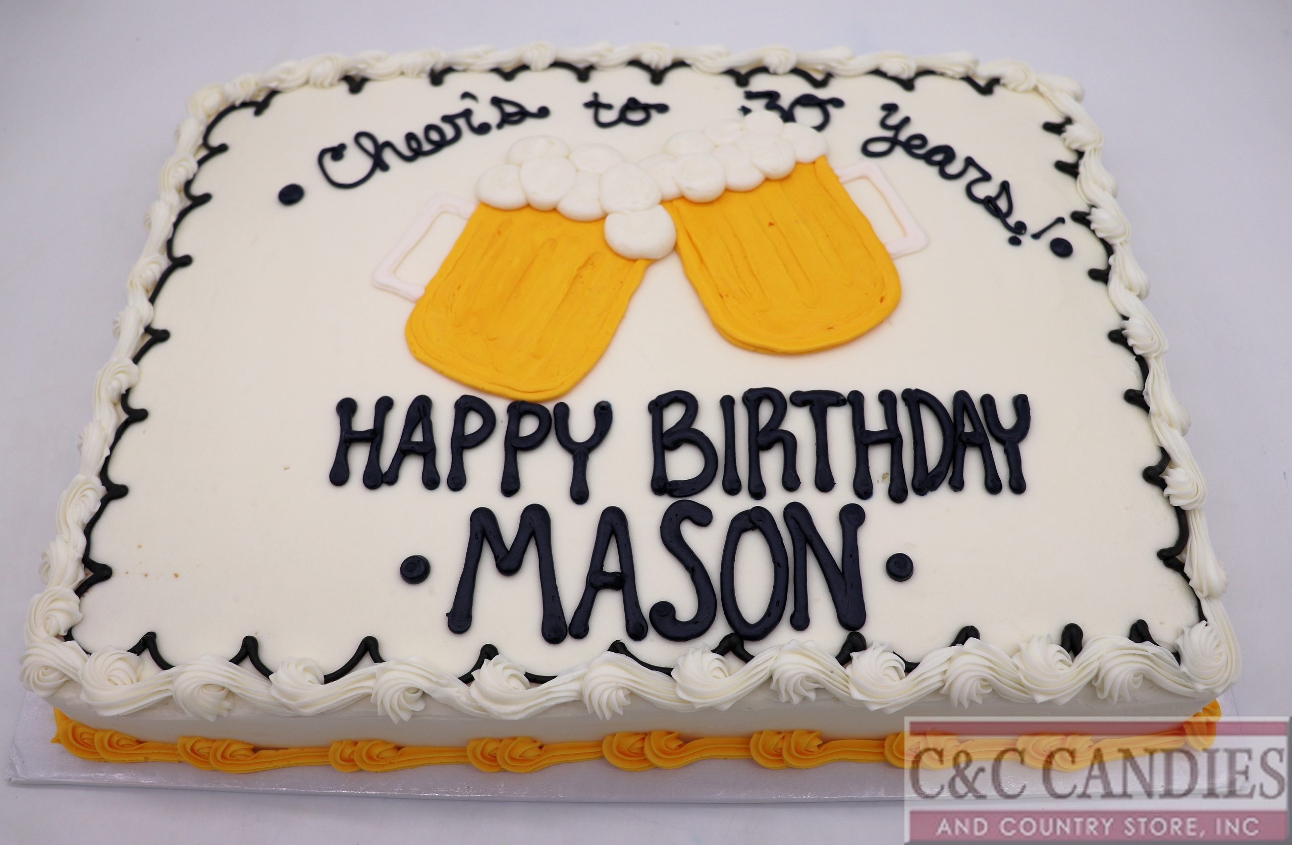 Raise a toast to your special occasion with our Beer Mugs Sheet Cake! Perfect for beer lovers, this fun and festive cake features a detailed beer mug design that’s sure to be the highlight of your celebration. Choose from a variety of delicious cake flavors, including banana, carrot, red velvet, marble, white, yellow, or chocolate, and top it off with your choice of rich, creamy icing. Whether it’s a birthday, graduation, or any beer-themed event, this freshly baked cake is the perfect way to celebrate in style while enjoying a delicious treat.