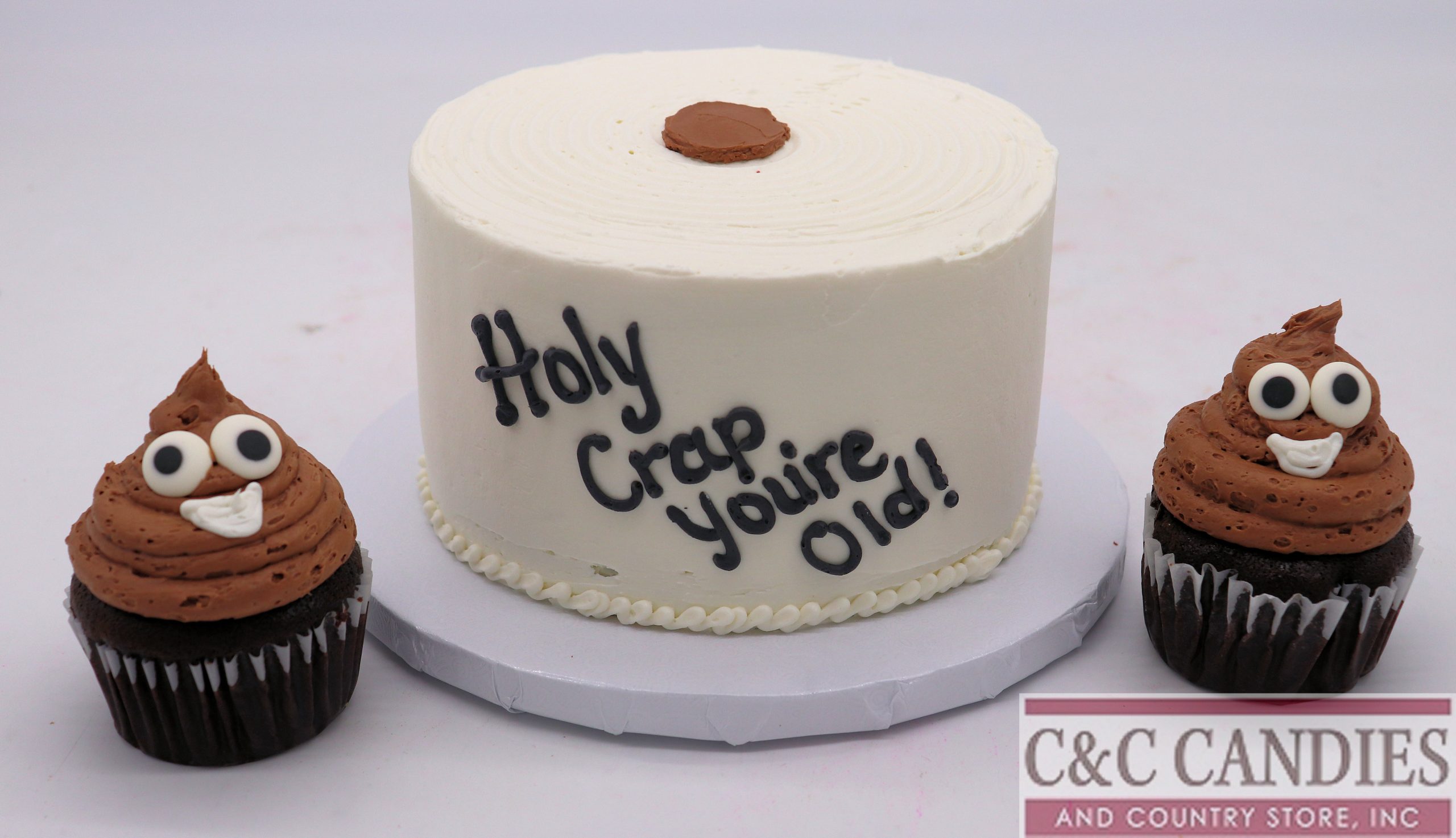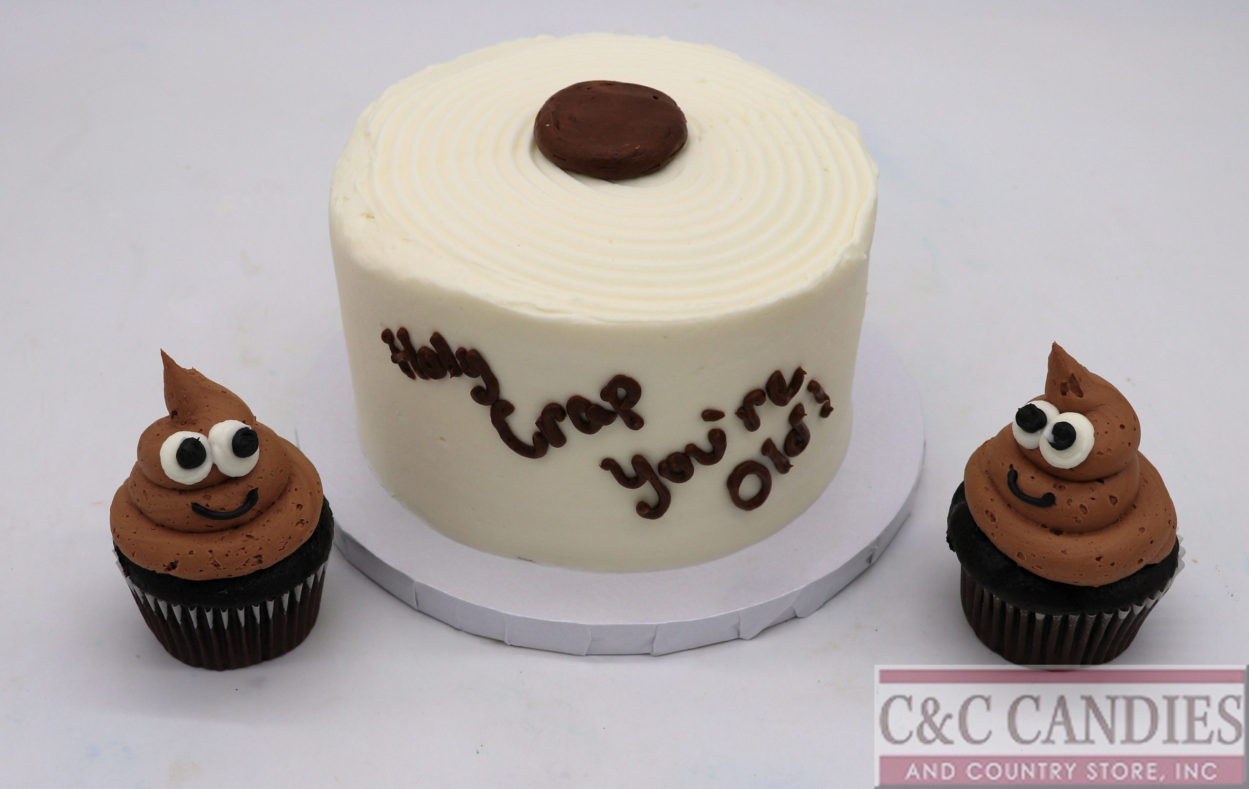 Roll into a hilarious celebration with our Toilet Paper Roll Cake! Perfect for milestone birthdays or gag gifts, this buttercream-only round cake is decorated to look like a roll of toilet paper and topped with the funny message, “Holy crap, you’re old!” Add even more laughs with optional poop emoji cupcakes to complete the theme. Choose from a variety of cake flavors including banana, carrot, red velvet, marble, white, yellow, or chocolate. It’s a cheeky and delicious way to bring humor to any over-the-hill celebration!
