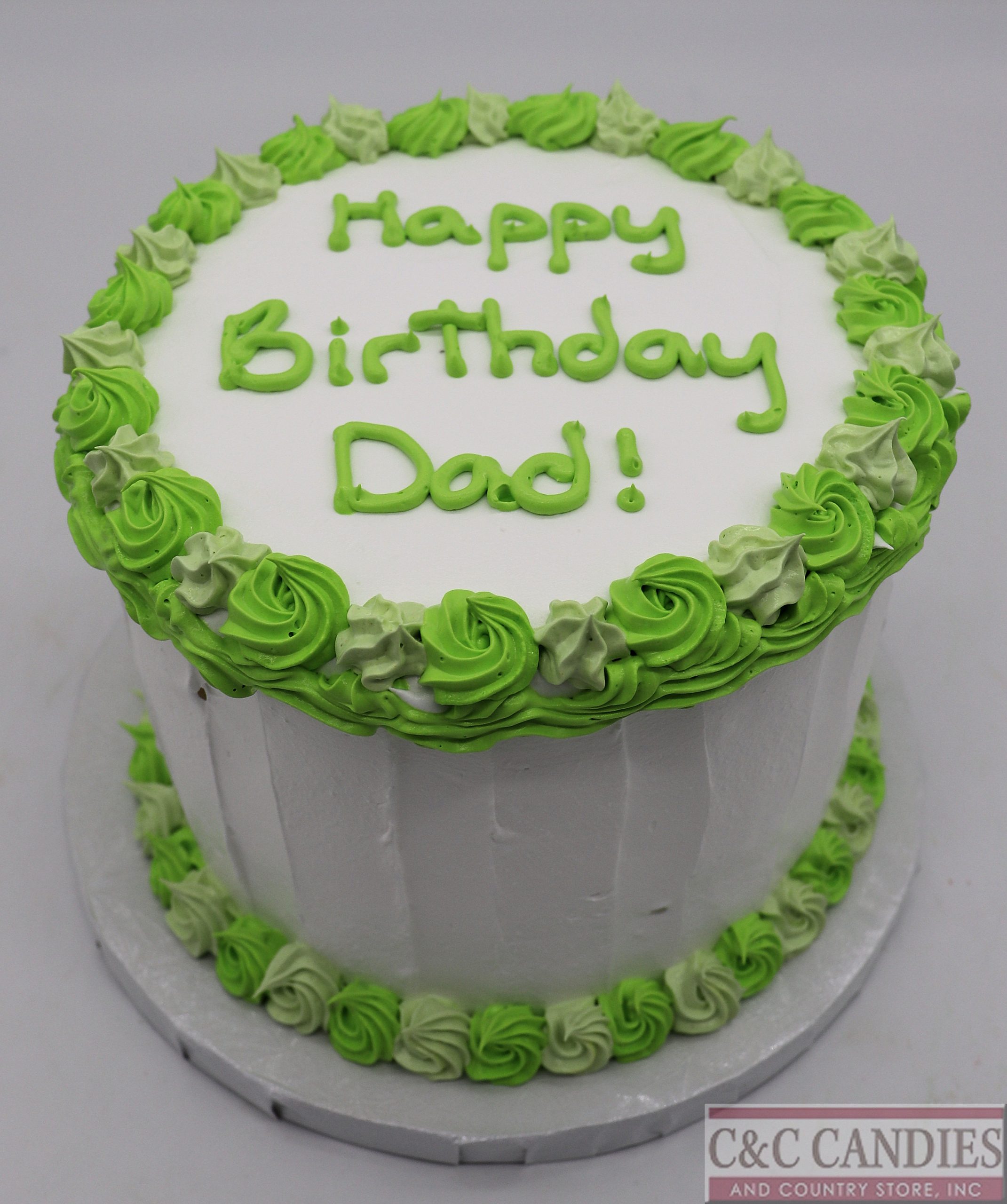 Our Designer Dad Cake is a simple yet refined classic that brings warmth and charm to any celebration. Featuring smooth icing and an elegant border of swirled rosettes in complementary tones, this cake is perfect for birthdays, Father’s Day, or honoring the everyday heroes in your life. The clean design makes it ideal for custom messages, allowing you to personalize it for any occasion.