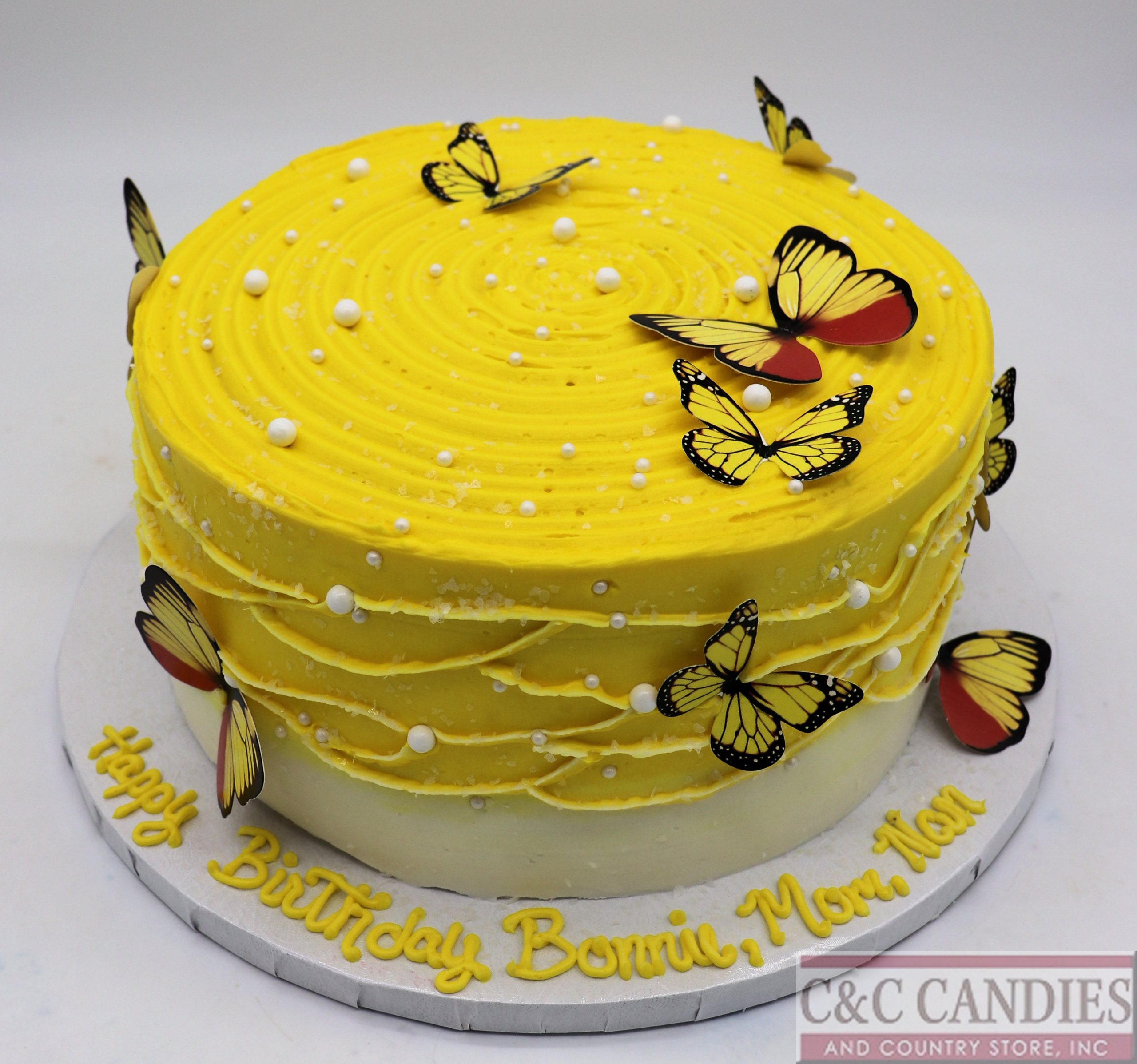 Elegant and whimsical, our Flutter & Pearl Cake is the perfect choice for a sweet celebration. This round cake features delicate pink buttercream, graceful piped texture, edible pearls, and vibrant butterflies that appear to dance across the surface. Ideal for birthdays, showers, or spring-themed events. Available in buttercream icing only.