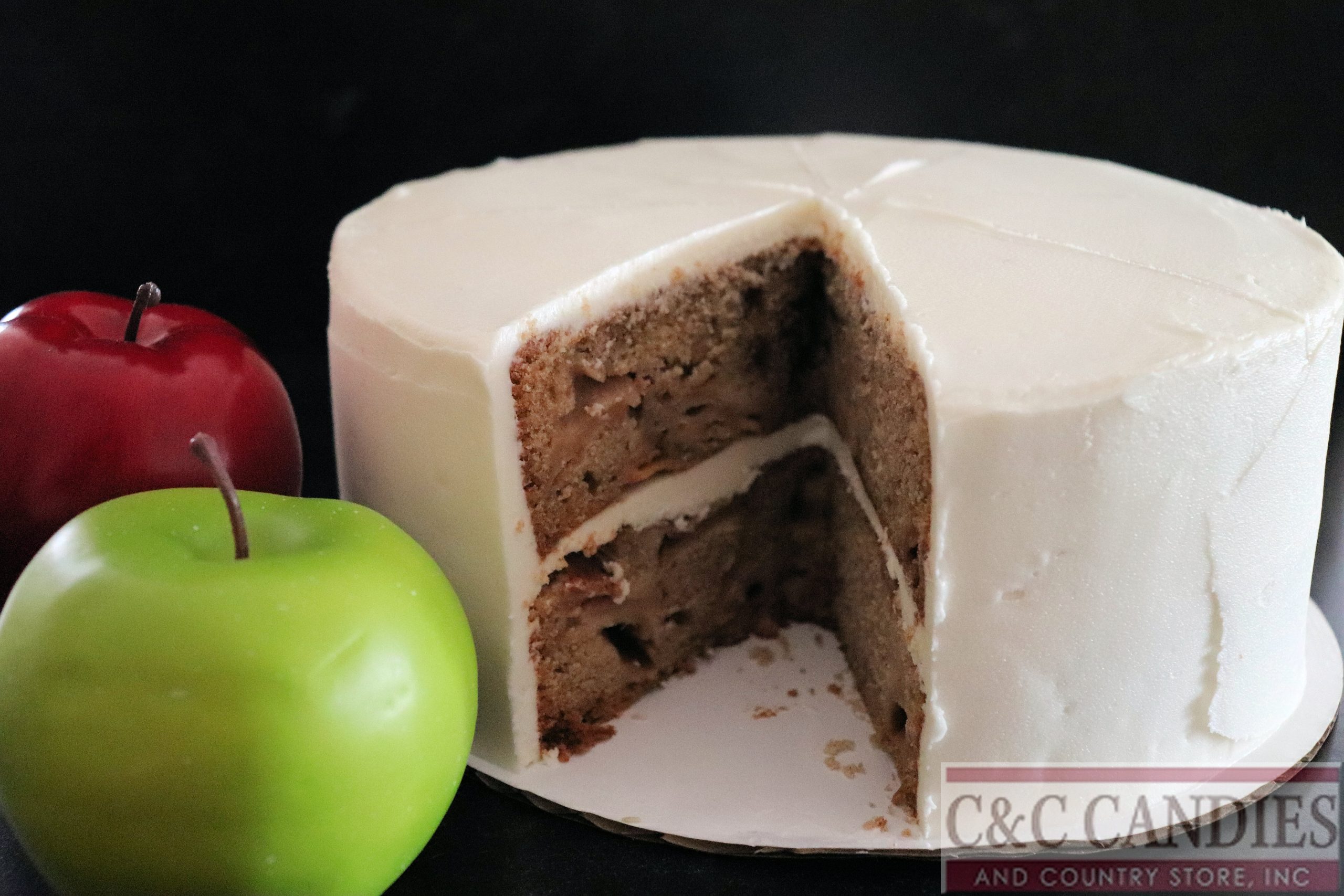 A cozy, decadent dessert that tastes like fall in every bite—our Caramel Apple Cake is a rich blend of comforting flavors. This spiced apple cake is layered with real apple pie filling and swirled with luscious salted caramel sauce for a warm, gooey surprise. It’s finished with a smooth and tangy salted caramel cream cheese icing that perfectly complements the cake’s warm spices and fruity sweetness. A seasonal favorite that’s perfect for gatherings, holidays, or anyone who loves the flavors of autumn. Available in round cake sizes only.