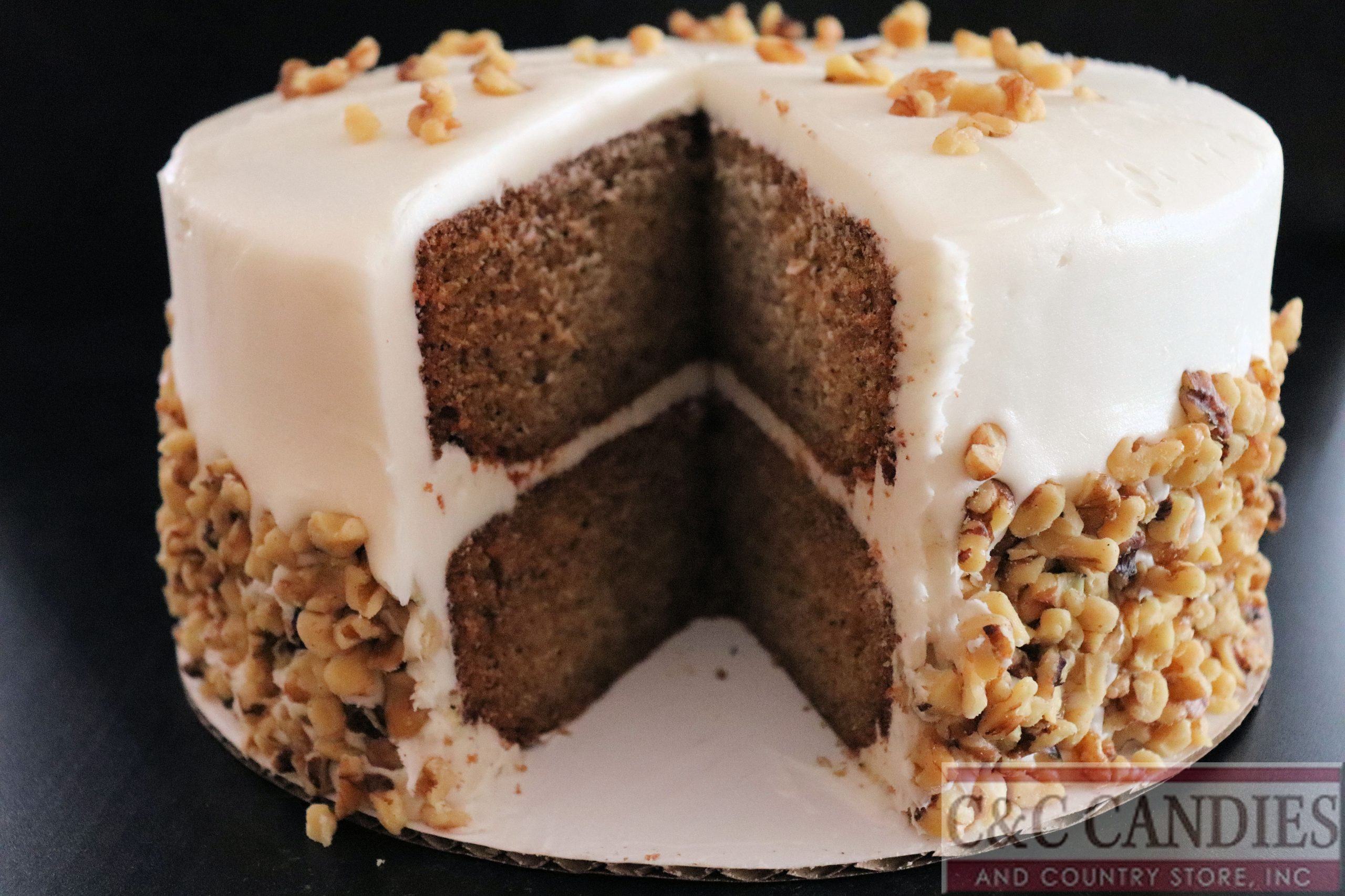 Rich, nutty, and full of comforting flavor—our Maple Walnut Cake is the perfect dessert for cozy gatherings or fall celebrations. This moist apple-flavored cake is studded with crunchy walnuts and frosted with a smooth maple-flavored cream cheese icing that adds just the right touch of sweetness. Finished with a sprinkle of walnuts on top, this cake delivers warm, nostalgic flavors in every bite. Available in round cake sizes only.