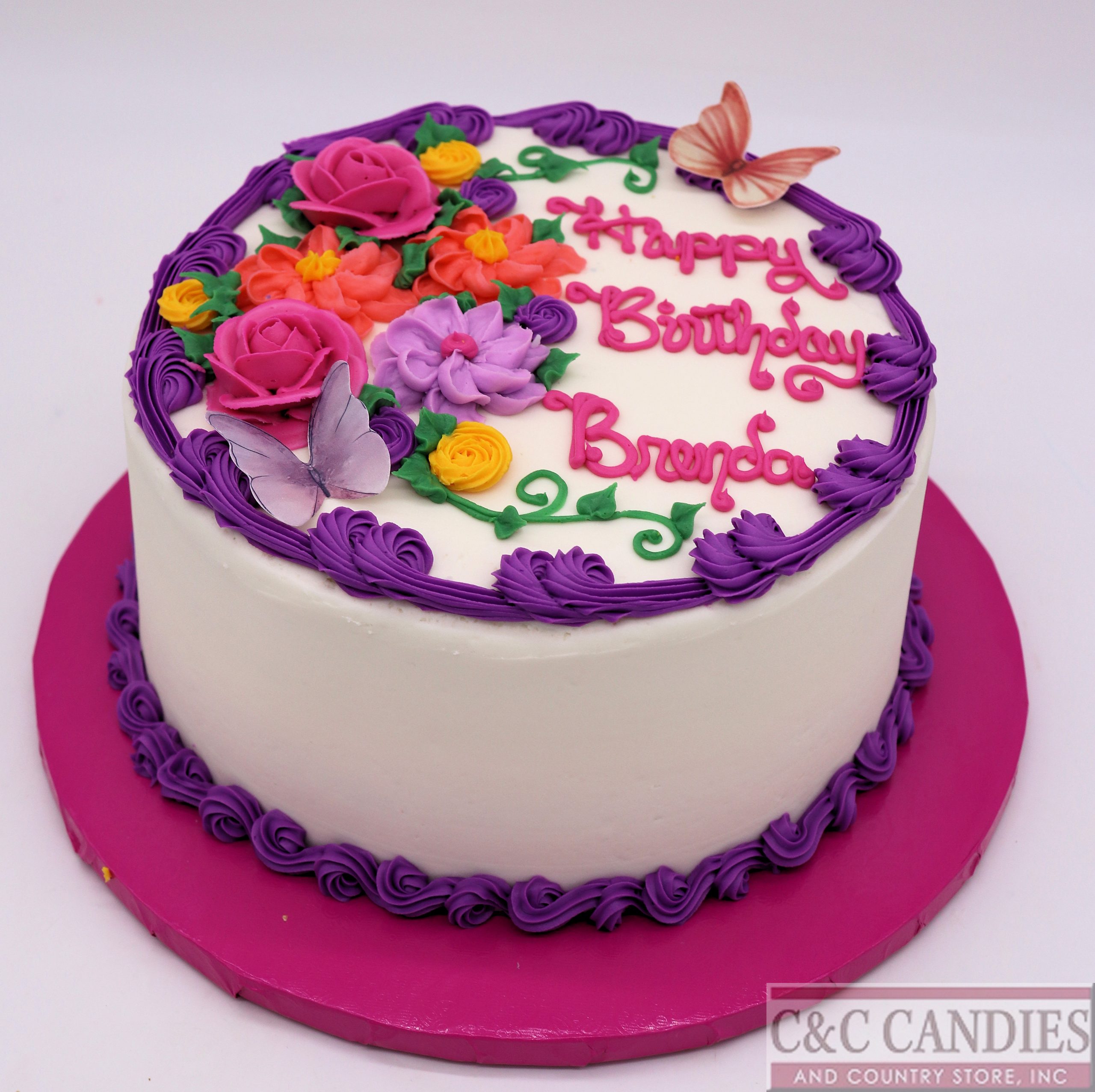Delicate, whimsical, and full of charm — our Butterfly Kisses Cake is a beautiful choice for birthdays and special celebrations. This round cake is adorned with hand-piped flowers, elegant scrollwork, and graceful butterflies, creating a magical garden-inspired look that’s sure to wow.