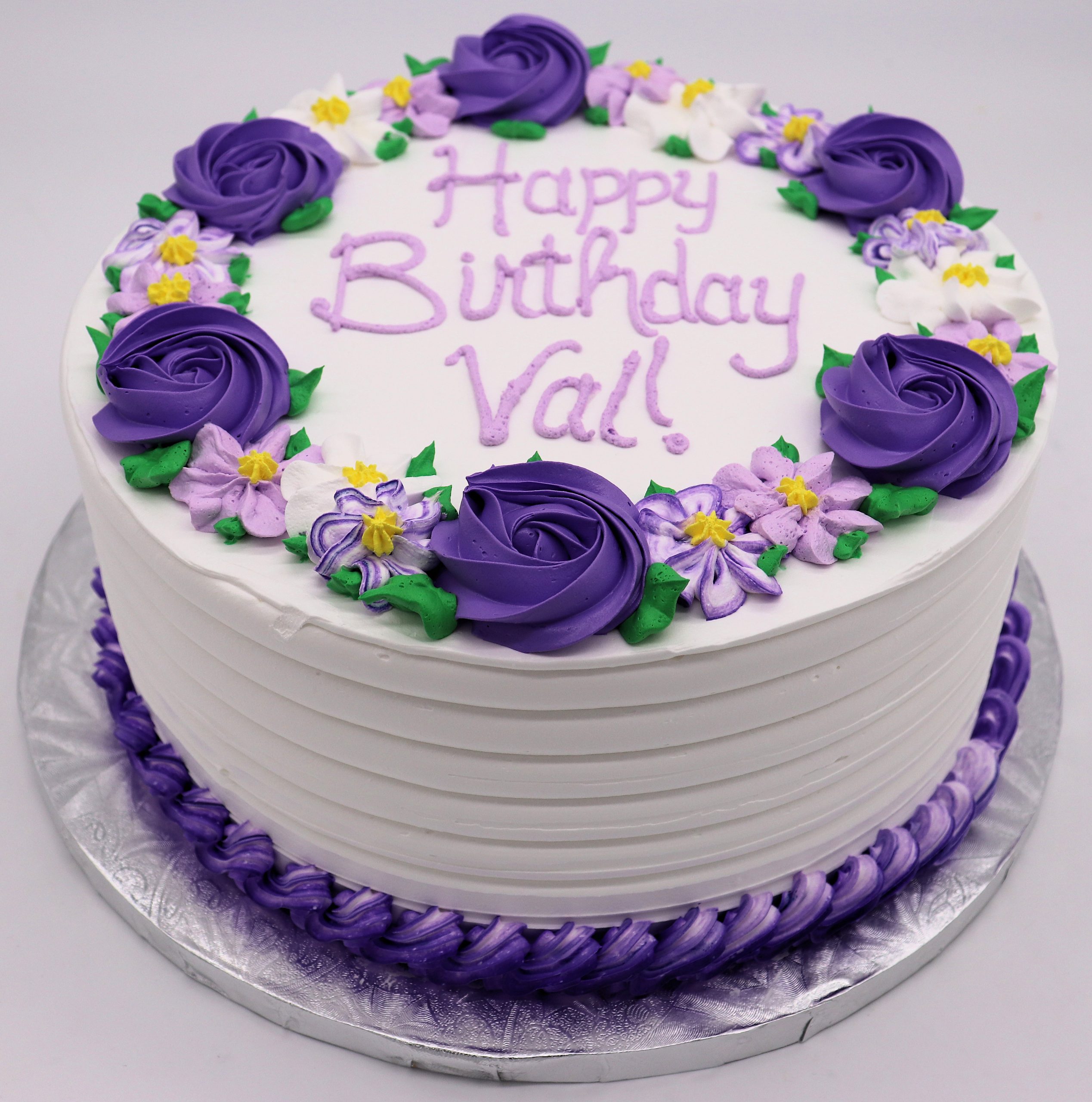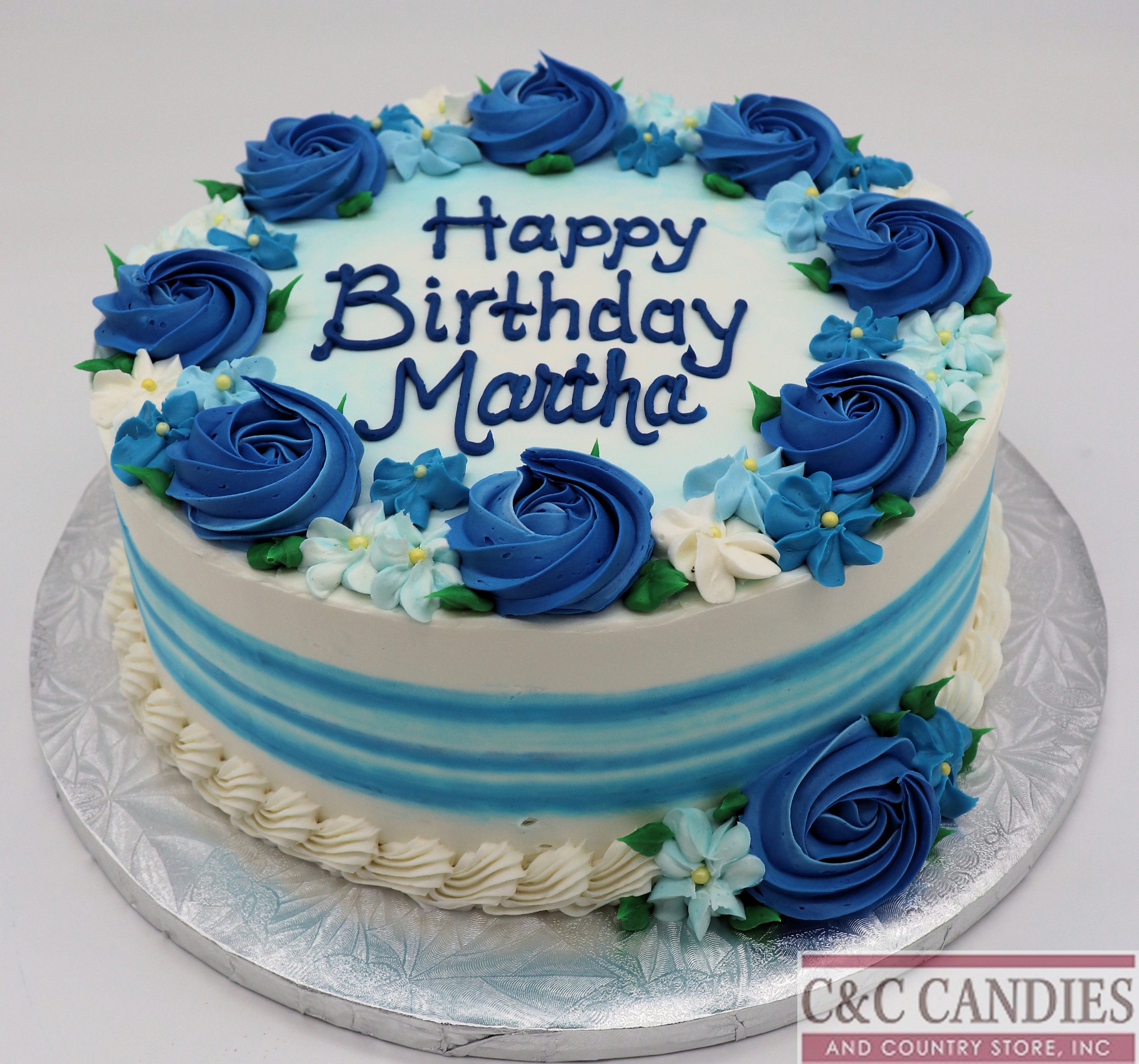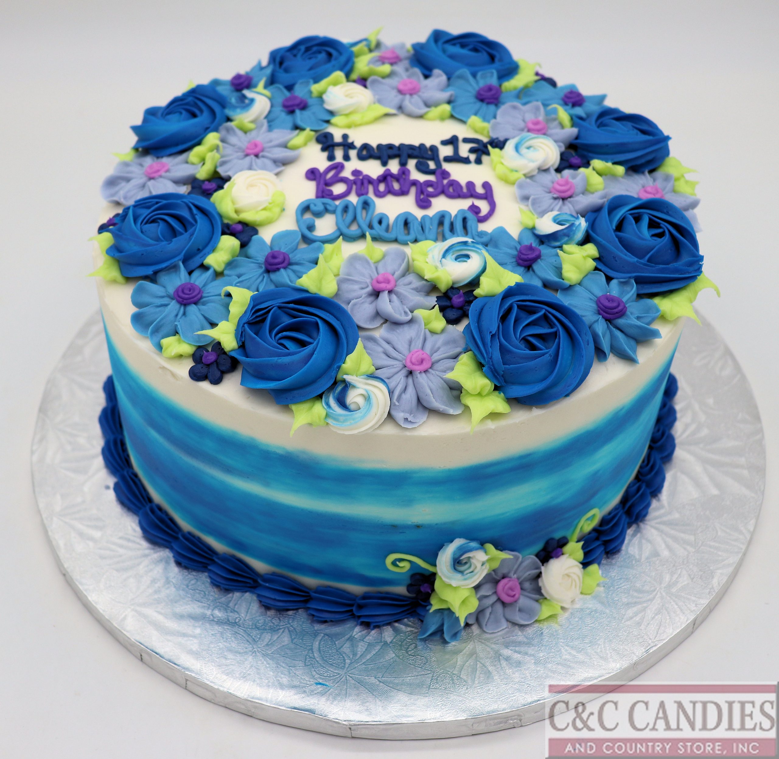 Elegant, fresh, and perfect for any celebration – our Rylee’s Garden Cake features delicate floral buttercream accents in soothing blue, white, and teal tones, all arranged around a soft watercolor-style smear on the sides. This design is available in any color palette of your choice, with the color smear effect created using buttercream only. Topped with beautifully piped rosettes and dainty blossoms, it’s a charming choice for birthdays, showers, or springtime gatherings. Customize your message and cake flavor to make it uniquely yours!