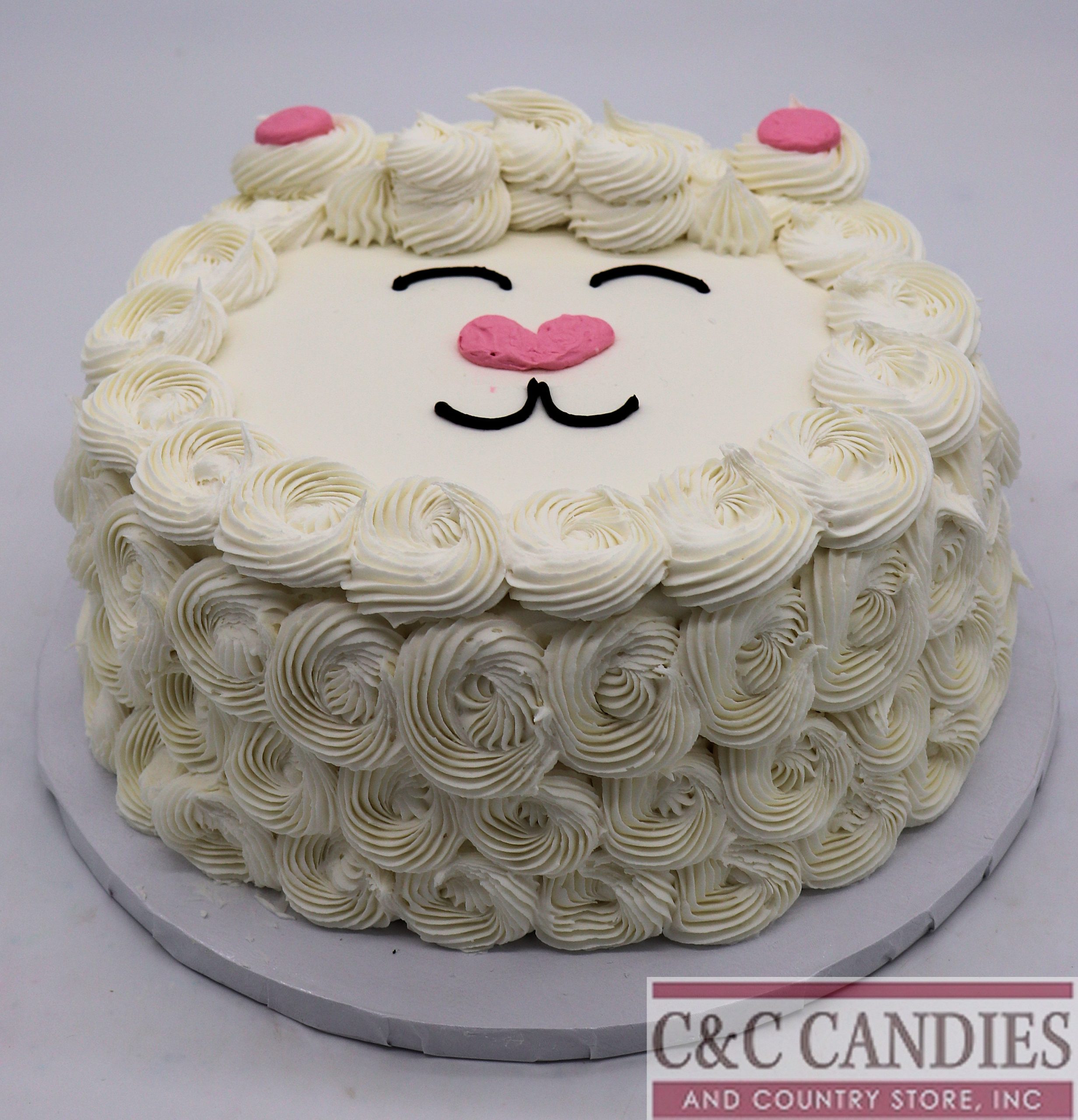 Bring soft and snuggly vibes to your celebration with our Sweet Lamb Cake! This precious round cake is covered in beautifully piped buttercream swirls, creating a fluffy lamb look that’s both adorable and delicious. Featuring a sweet pink nose, gentle smile, and dainty ears, it’s the perfect choice for birthdays, baby showers, or spring-themed parties. Available in your favorite cake flavor with buttercream icing only.