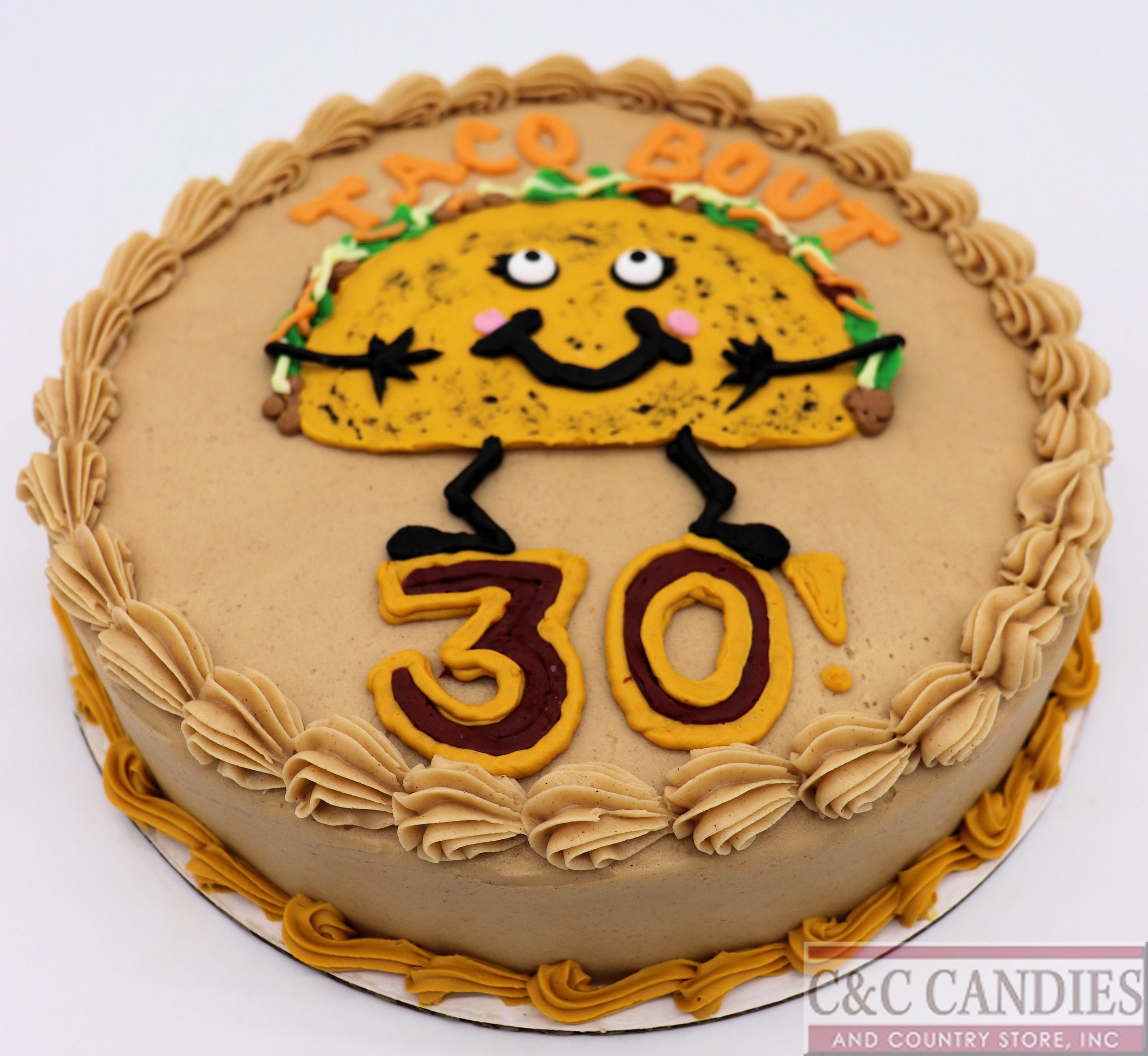 Taco ’bout a party! Our Taco ‘Bout a Birthday Cake is a hilarious and festive way to celebrate a milestone birthday with flavor and flair. Featuring a cheerful taco character and bold buttercream lettering, this cake is perfect for anyone who loves tacos, puns, and a good laugh. Ideal for 30th birthdays—or customize the age to fit your fiesta! Available in a variety of delicious cake flavors like banana, carrot, red velvet, marble, white, yellow, or chocolate, and topped with your choice of icing: buttercream, whipped, cream cheese, or peanut butter.