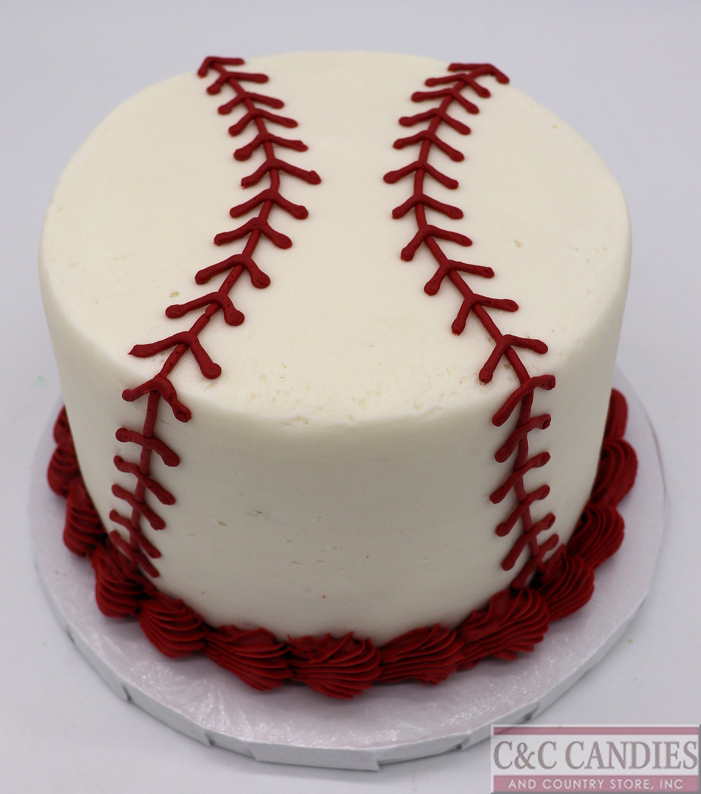 Hit a home run at your next celebration with our Baseball Round Cake! This sporty design features classic red stitching piped over a smooth white icing finish to resemble a real baseball—perfect for team parties, birthdays, or your favorite fan’s special day.