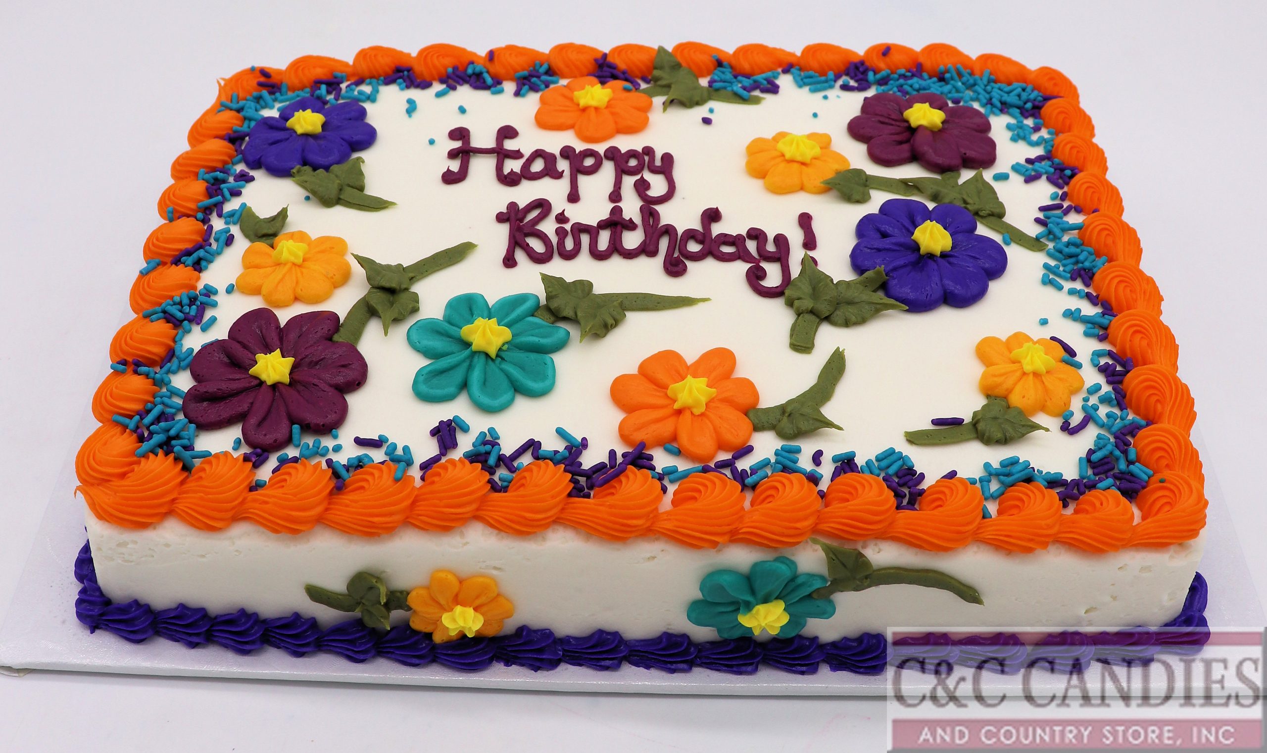 Bright, cheerful, and bursting with color—our Dazzling Daisies Sheet Cake is the perfect pick for birthdays, celebrations, or any event that calls for a touch of joy. Featuring a lively mix of hand-piped daisy-style blooms in bold, vibrant shades, this cake is sure to be a showstopper at your next gathering. The playful design is finished with coordinating sprinkles and a festive border that adds the perfect pop of fun.