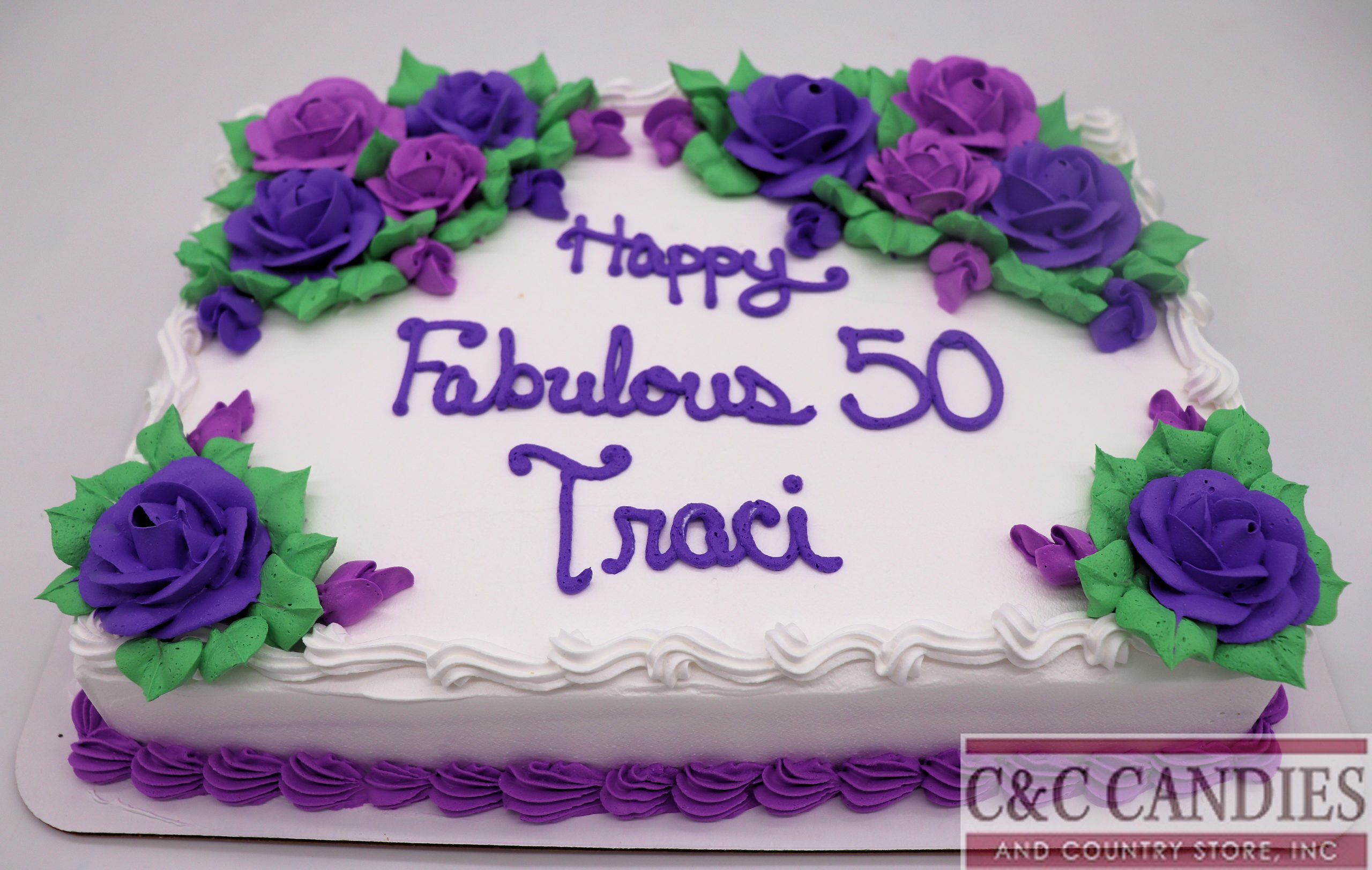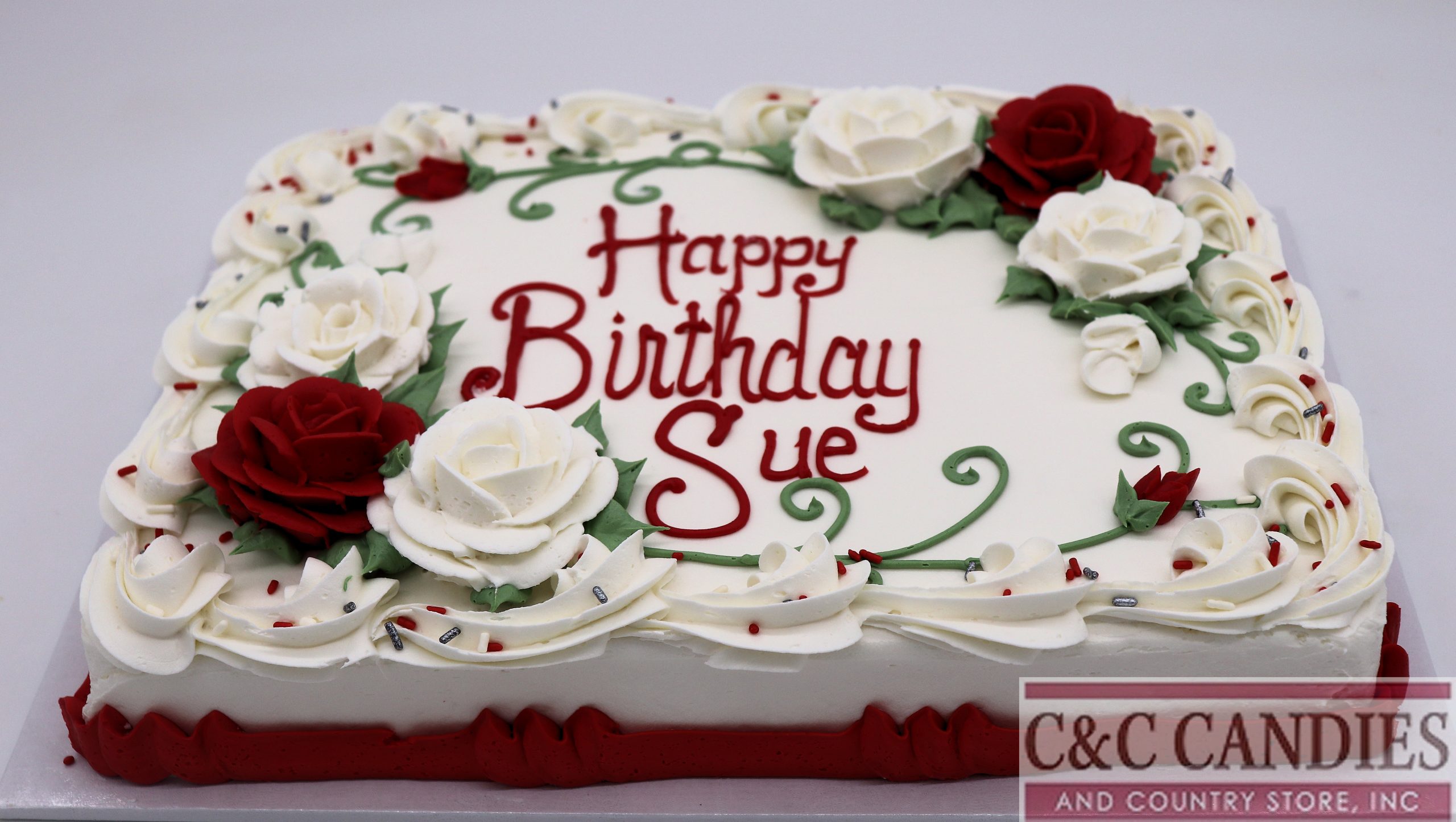 Elegant and timeless, our Garden of Roses Sheet Cake is a classic choice for birthdays, anniversaries, retirements, or any celebration filled with love and joy. This beautiful cake features a stunning arrangement of hand-piped roses in your choice of colors, surrounded by vibrant green leaves and a coordinating border for a fresh, polished finish.