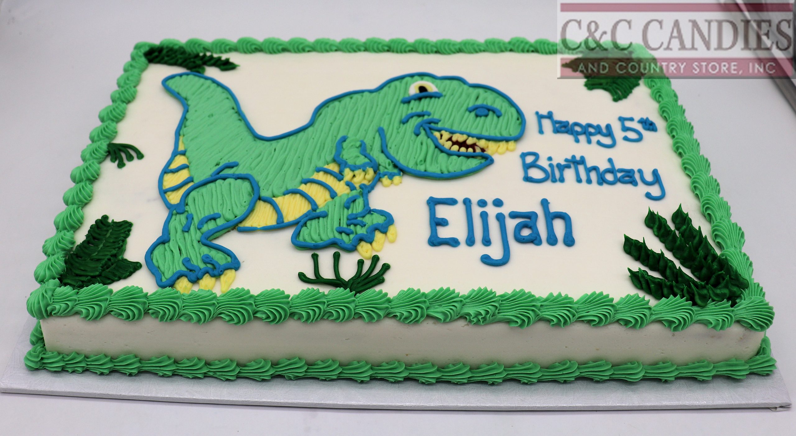 Stomp into prehistoric fun with our Dino Roar Birthday Cake! This playful sheet cake features a friendly green dinosaur surrounded by piped greenery and bold, colorful details that bring the Jurassic vibes to life. It’s the perfect pick for dino-loving kids and roaring-good birthday celebrations.