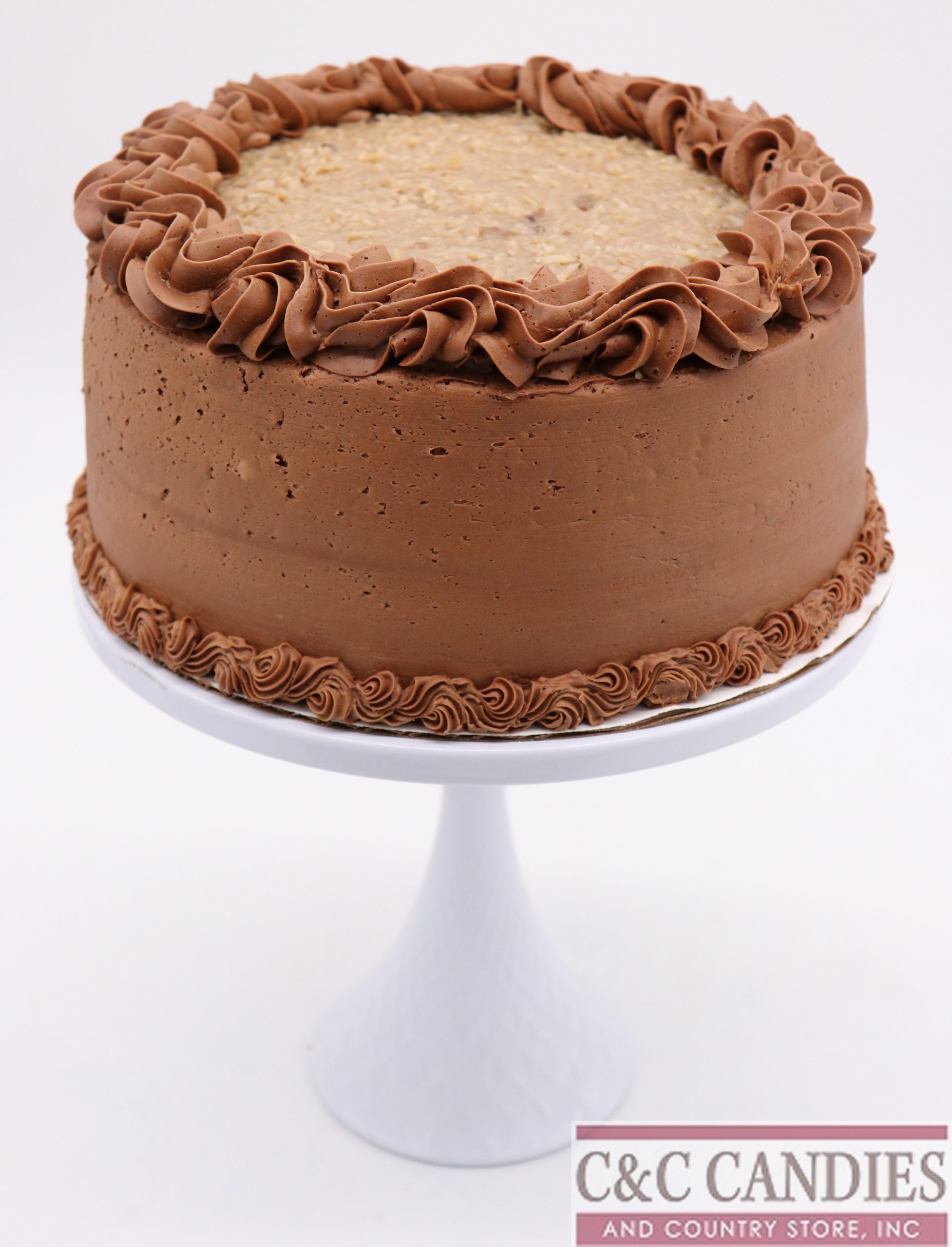 A moist and light chocolate cake that delivers rich flavor without being overly dense. This customer favorite is covered in our smooth chocolate buttercream frosting and topped with a generous layer of creamy coconut-pecan icing. Double-layer cakes are also filled between the layers with this signature coconut-pecan blend for even more indulgence. A perfect choice for chocolate lovers looking for something extra special.