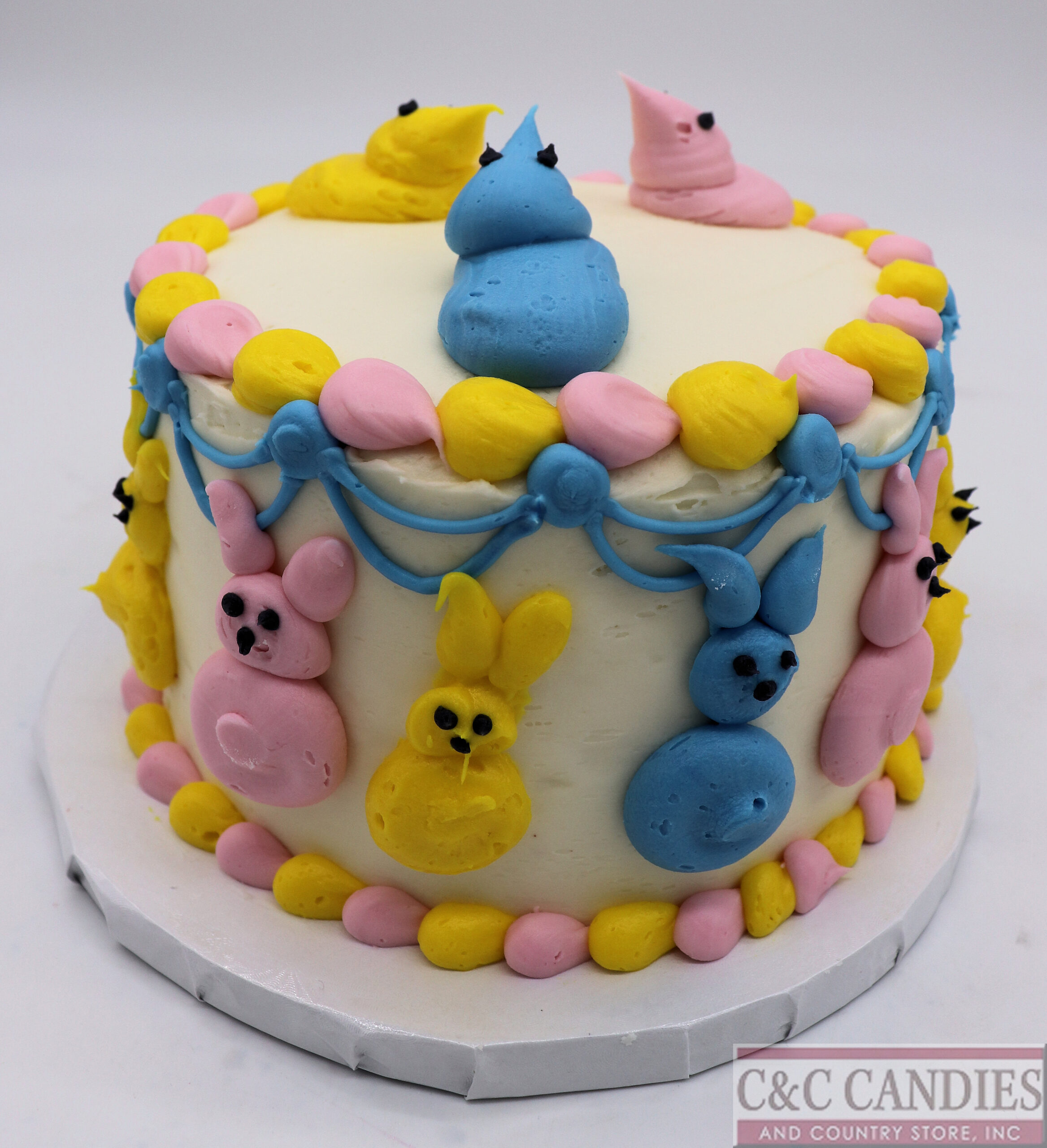 Celebrate Easter with a cheerful round cake featuring a classic marshmallow Peep design, made entirely with smooth, rich buttercream icing—no fondant needed! This vibrant cake showcases the iconic Peep shape (chick or bunny) in bright pastel colors, making it the perfect centerpiece for your spring festivities. Whether you’re hosting an Easter brunch, gifting a sweet treat, or just looking for a fun seasonal dessert, this Peep cake delivers playful charm and delicious flavor in every bite.