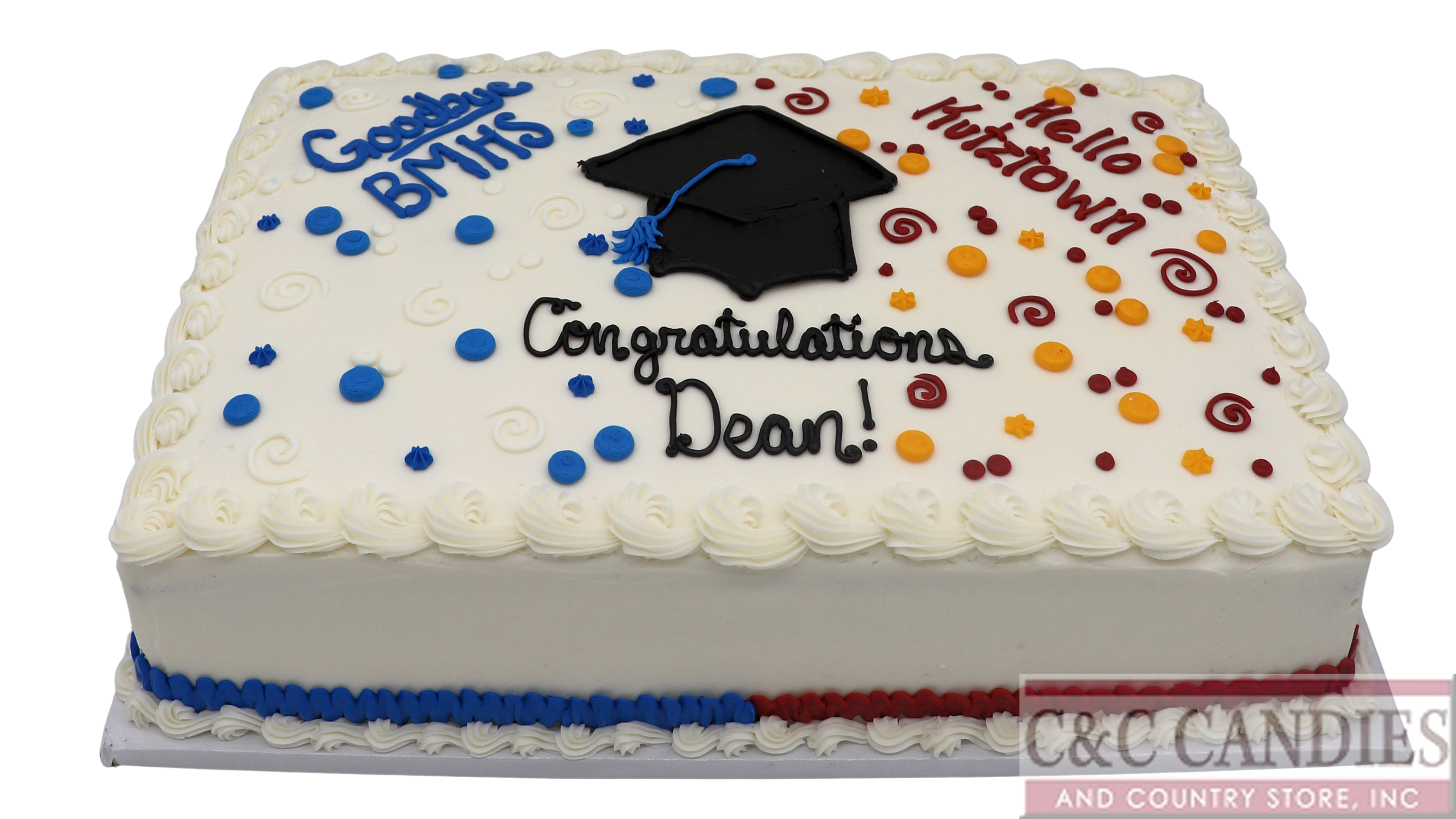 Celebrate the journey from one school to the next with our Dual School Graduation Sheet Cake! This festive design features a split theme to honor both alma mater and future—perfect for students transitioning from high school to college. Topped with a graduation cap, confetti-style accents, and custom messages for each school, this cake is a sweet sendoff and warm welcome in one.