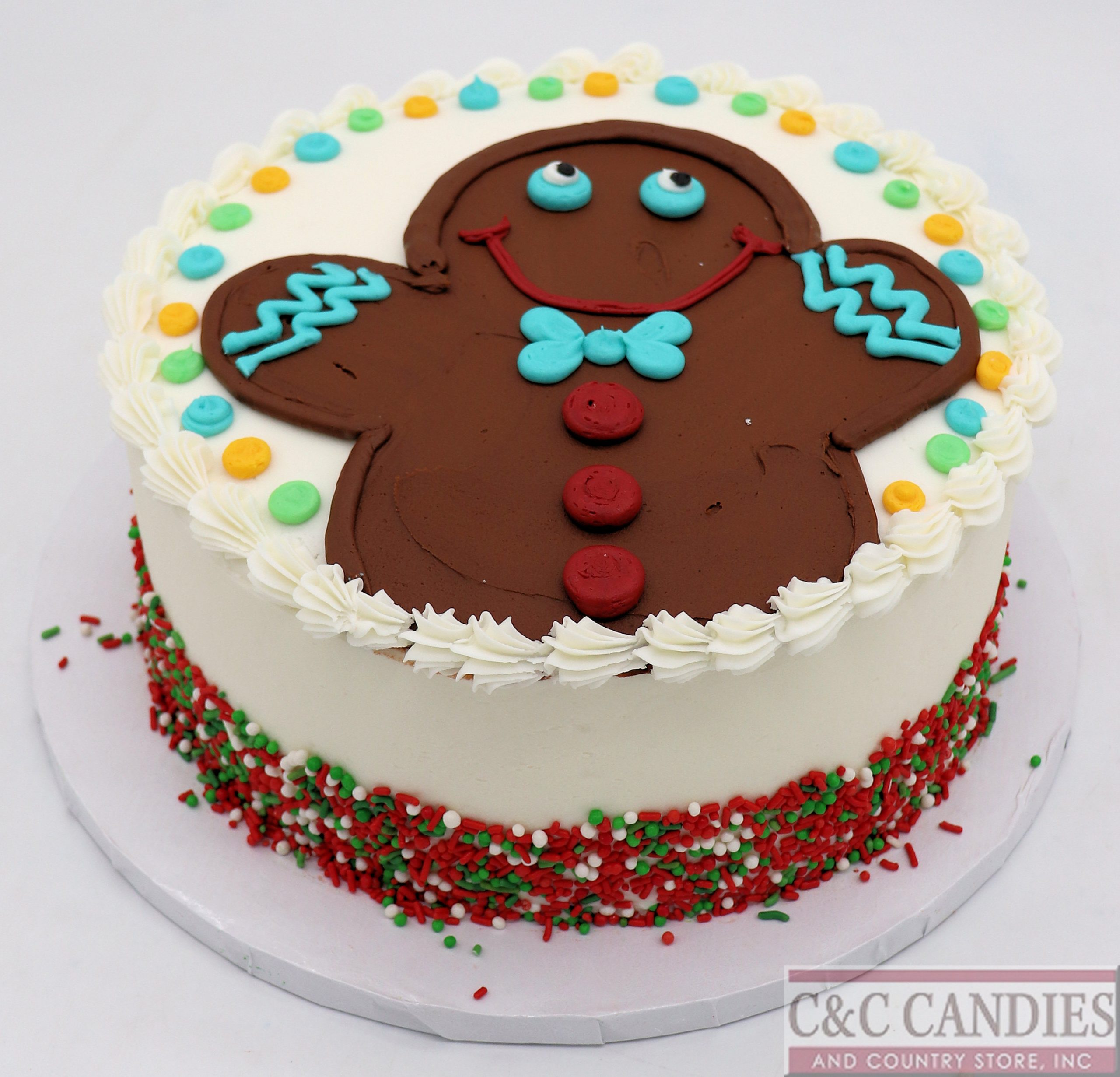 Bring extra cheer to your holiday table with our Gingerbread Joy cake! This round cake features an adorable hand-piped gingerbread figure with colorful accents and festive holiday sprinkles around the base. A playful and sweet treat perfect for kids’ parties, cookie swaps, or Christmas celebrations of any kind.