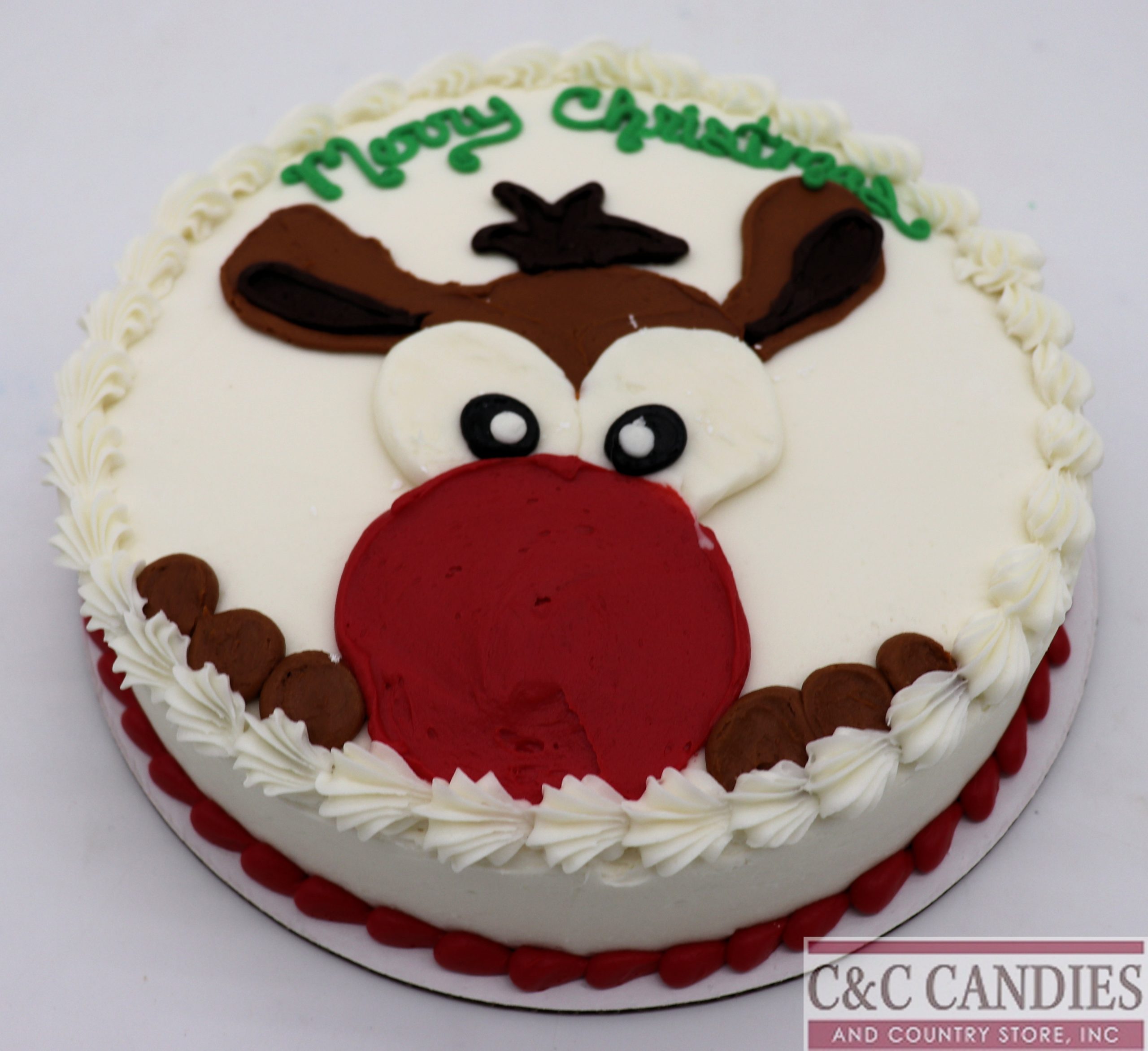 Celebrate the season with our adorable Reindeer Round Cake! This festive holiday cake features a charming reindeer face on top, complete with a big red nose, expressive eyes, and colorful Christmas sprinkle accents. Perfect for holiday parties, December birthdays, or a fun Christmas dessert centerpiece. Customize your flavor and icing to make it uniquely yours—this sweet little reindeer is sure to make everyone smile!