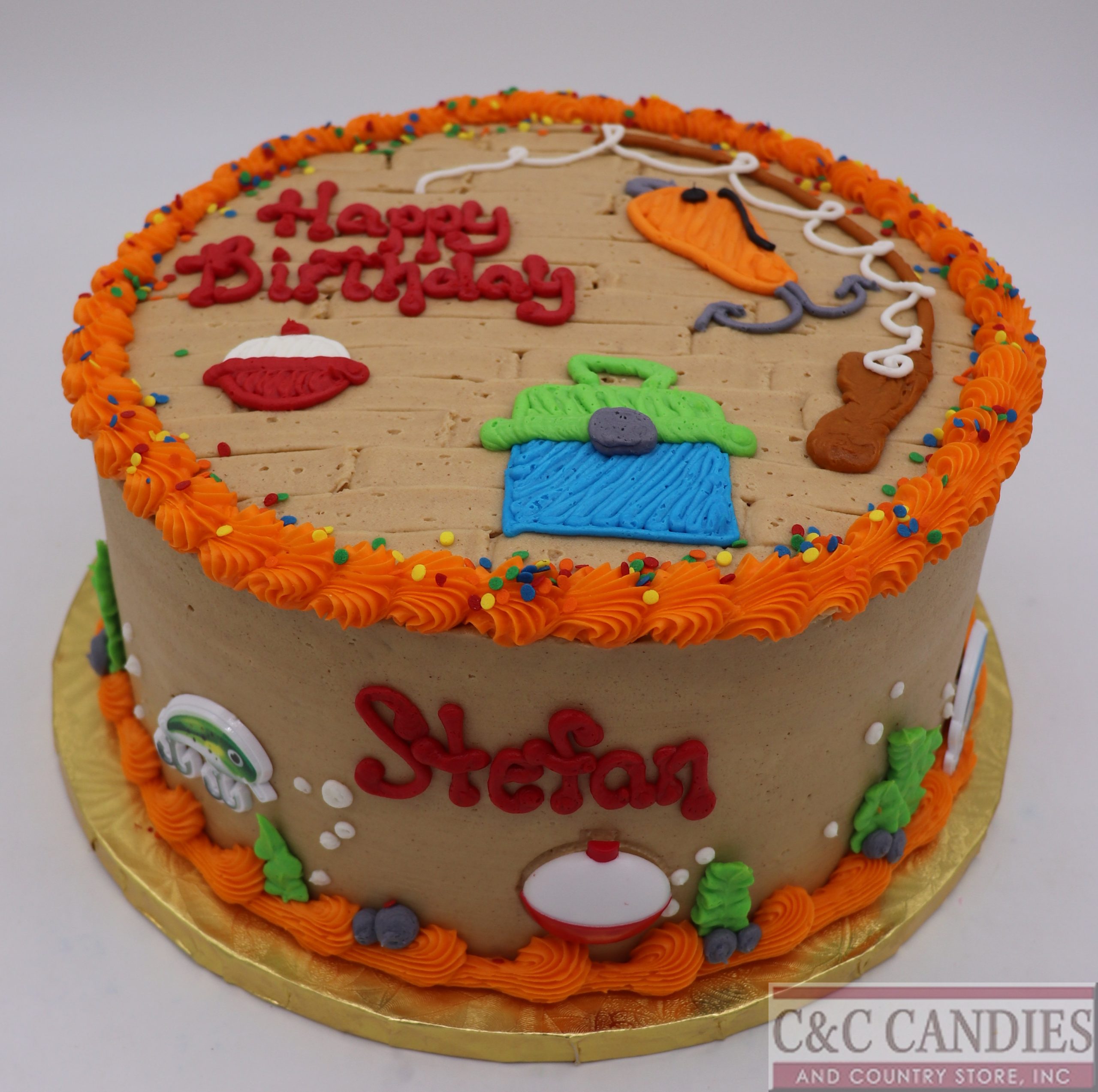 Reel in the fun with our Rod & Reel Round Cake — the perfect catch for birthdays, retirements, or celebrations for your favorite angler! This fishing-themed cake features piped tacklebox, lure, bobber, and hook decorations, topped with vibrant icing colors and playful accents. Available in a variety of delicious cake flavors and icings, it’s sure to hook a smile.