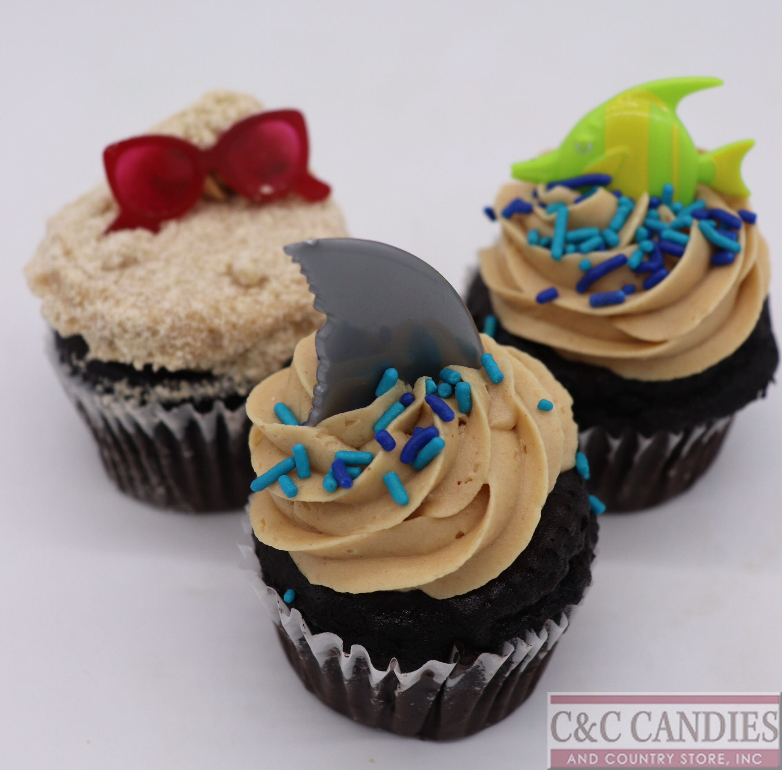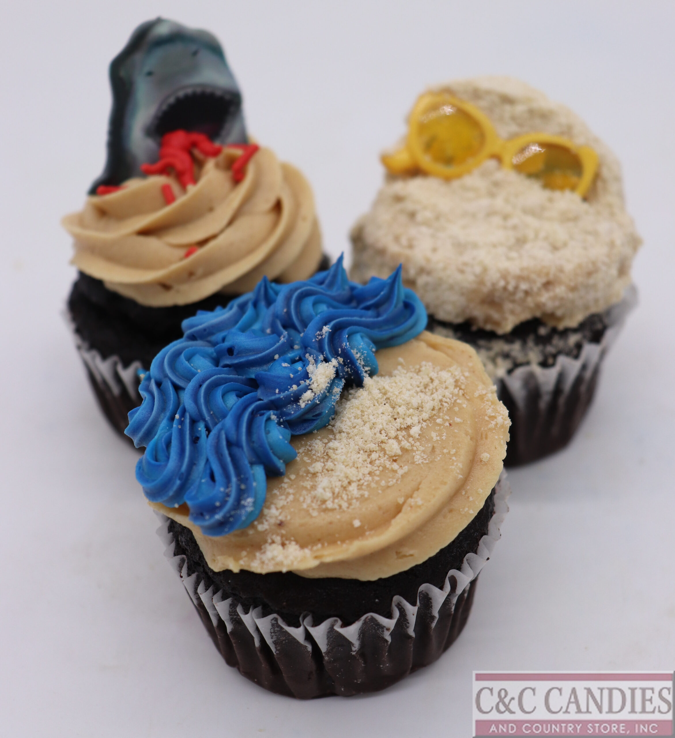 Make a splash with our Beach-Themed Cupcakes — the perfect treat for your next tropical celebration! Available in a variety of delicious flavors including banana, carrot, yellow, chocolate, red velvet, and confetti, each cupcake is topped with smooth buttercream icing and decorated with fun beach-inspired accents like sharks, sunglasses, sand, and sea creatures.