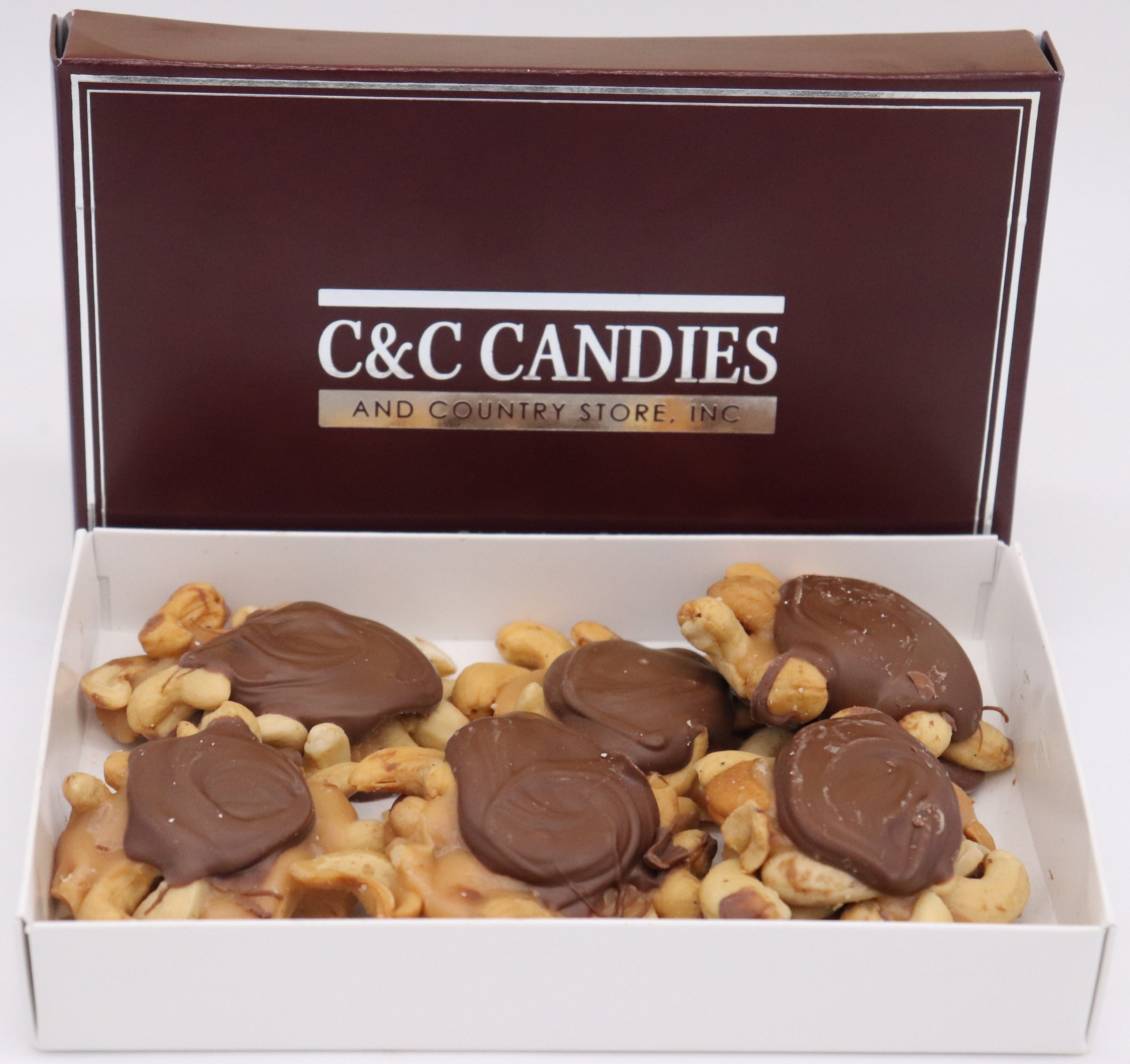 Sink your teeth into our irresistibly nutty Milk Chocolate Cashew Paws! Each handcrafted cluster features a bed of crunchy, buttery cashews layered with soft, gooey caramel and topped with smooth milk chocolate. The combination of textures and flavors makes every bite a satisfying mix of salty, sweet, and creamy.